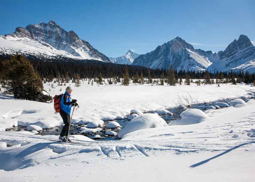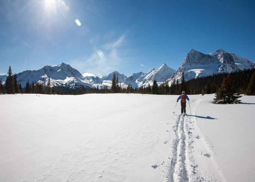 These beautiful trails treat you all the way with fantastic views at the Rocky Mountains and Caribou Mountains! X-country skiing and nature of its finest is guaranteed here on this trail, that has something to offer for all skiing abilities!