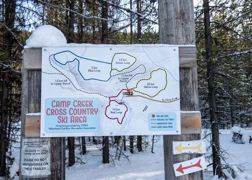 It is located 14 km south of Valemount, 2.5 km off highway 5 on the plowed Camp Creek Road. It offers a cross-country trail system for all skiing abilities. You will find great snow for a fun day of skiing on the regularly groomed trail!