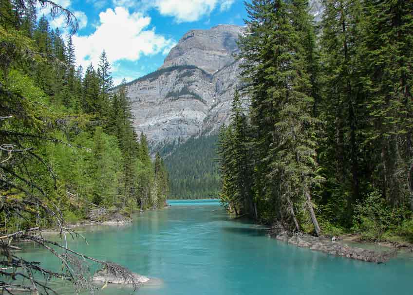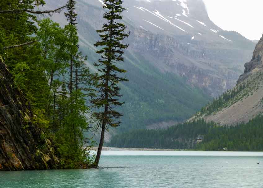 Kinney Lake is a lake located in Mount Robson Provincial Park of British Columbia, Canada. The trail to Kinney Lake is fairly easy to hike and follows the Robson River all along. Huge cedar trees, moss and wonderful wildflowers border this inspiring hiking trail at Mount Robson. It is a marvelous 4.5 km to Kinney lake. The lake is an expansion of the Robson River and is located about halfway between the river’s source and its mouth. It was named by Arthur Philemon Coleman, a Canadian geologist, who explored the region with his friend, George Kinney, who spotted the lake first. Visitors can enjoy the Kinney Lake trail all year around. During the winter time you can hike, snow shoe or cross country ski to Kinney Lake.